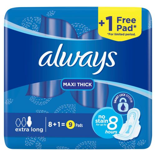 Always Maxi Thick Pads – Extra Long – 9 Pads