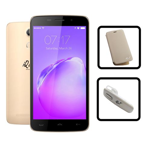 iQ&T G4 – 5.5" 16GB/2GB Dual SIM 4G Mobile Phone+ Free Flip Cover + Bluetooth Earphone – Gold